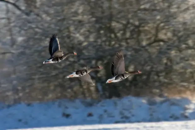 Dock finns det vissa individer som saknar dem helt. De juvenila fåglarna ser i stort sett ut som adulta fåglar förutom att de saknar de svart tvärgående ränderna på buken och den vita bläsen. Det vanligaste är ett två- eller trestavigt "kjy-jy" eller "kjo-jo-jo". Vissa höstar rastar upp till 40 000 gäss i Skåne.