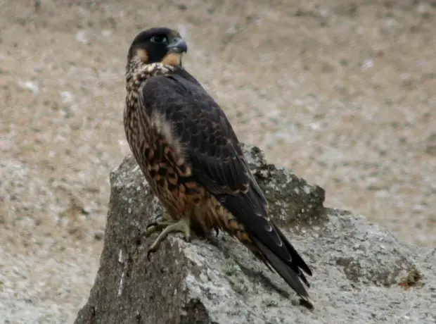 Ansiktsmasken är skarp med tydlig falkmustasch. Stup om minst 10 och upp till 100 meters höjd föredras, helst ska stupet ha vatten nedanför. Pilgrimsfalkar tillbringar ofta vintrar i fiskelägen och hamnstäder, där de jagar måsar, kajor och duvor. Vad gäller maxhastigheten har olika studier pekat på olika resultat från 320 km/h till hastigheter på över 380 km/h. Dessa hastigheter gör att pilgrimsfalken sedan länge benämns som världens snabbaste djur men några faktiska vetenskapliga studier som prövat detta finns inte. I boken The Gyrfalcon hävdar Eugene Potapov och Richard Sale istället att jaktfalken kan vara snabbare. Vid normal flykt håller fågeln 90-110 km/h.