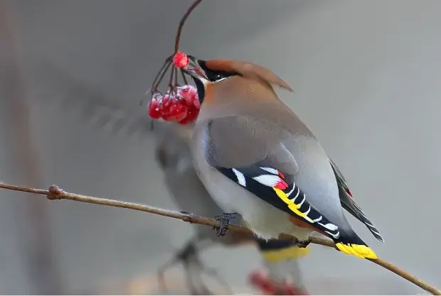 Vintertid kan den observeras i stora flockar längre söderut. Mängden fåglar varierar beroende på tillgången på föda, exempelvis rönnbär.